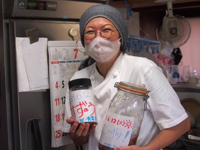 コマデリ こいけひとみさんが手に持つビンには選手が作った梅干しが