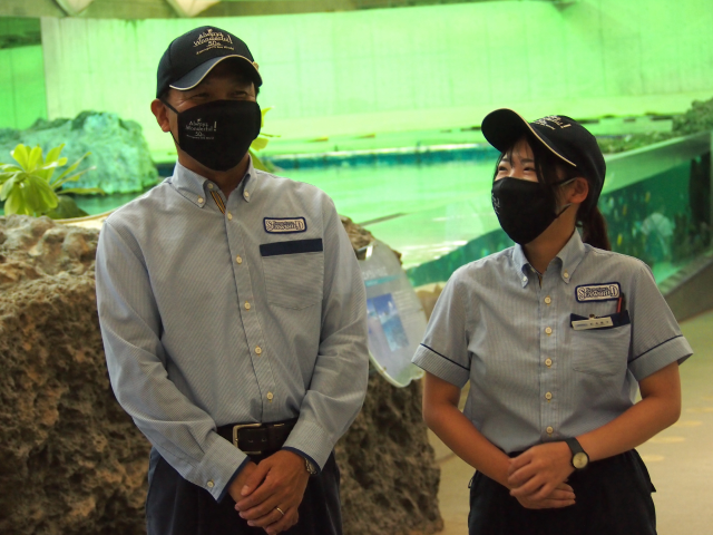 鴨川シーワールド セールス&マーケティング支配人 中橋健二さん(左) 広報 杉本夏子さん(右)
