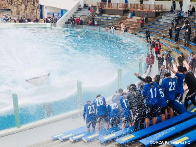 「シャチが尾びれで、水をバッサバッサ、1分間くらいかけ続けます。寒い2月にやるので、すごく盛り上がりますね。シャチからオルカ鴨川FC選手への激励ですよ(笑)」
