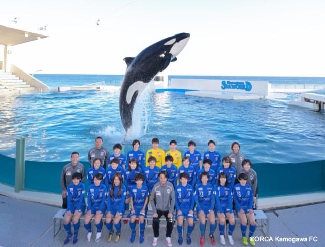 オルカ鴨川FCの選手集合写真 「オルカ」はシャチの学名Orcinus orca(オルキヌス・オルカ)が由来