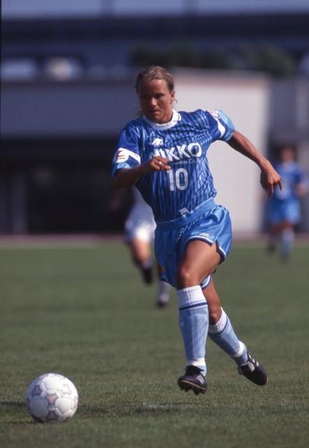 しかし女子リーグだけでなく、日本のサッカー全体に驚きを与えたのが、1992年、リーグ昇格2シーズン目の日興證券の発表でした。ノルウェー代表のFWリンダ・メダレンとDFグン・ニイボルグの加入です。ノルウェーは前年に行われた第1回女子ワールドカップの準優勝国で、メダレンは6点を記録して得点3位、MVP投票でも3位にランクされた「ワールドクラス」のスターでした。