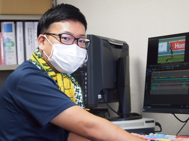 制作グループの山本智章さんは伊賀FCくノ一三重の番組の主担当。2017年から伊賀FCくノ一三重の番組制作に関わっています。担当になったばかりの2017年に、2017プレナスなでしこリーグ1部を最下位で終えた伊賀FCくノ一三重は2部に降格。翌2018年に、山本さんは、1部昇格を目指して頑張る選手を追いかける番組を制作しました。印象に残っているのは2018プレナスなでしこリーグカップ2部の決勝戦で東京まで取材に行ったこと。当時キャプテンだった杉田亜未選手にインタビューしました。