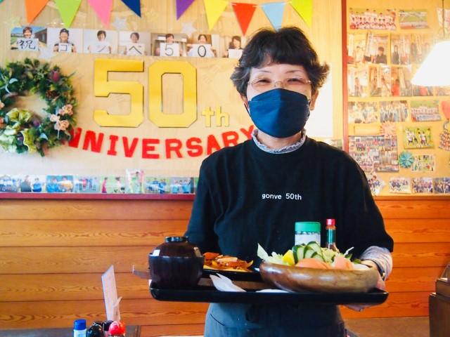 ゴンベは湯郷温泉にある軽食・喫茶。選手のインタビュー記事でも、よく話題に上る店です。上原寿子さんが、この店を始めて50年が経ちました。上原さんには、これまでに岡山湯郷Belleでプレーした多くの選手から、写真や動画でたくさんのお祝いメッセージが届き、その一部は、店内の壁に掲出されています。ゴンベは、岡山湯郷Belleの熱心なファン・サポーターならば誰もが知っている、選手とファン・サポーターの憩いの場なのです。