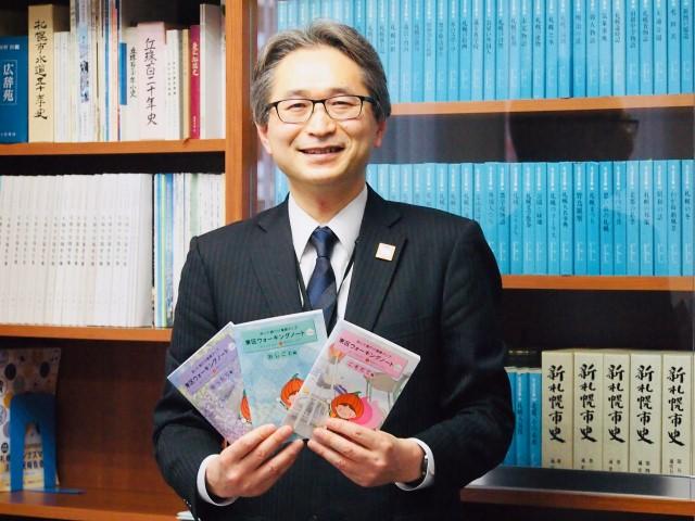 『東区ウォーキングノート』を手にした東区長の小田原史佳さん (※撮影時にマスクを取りました。)