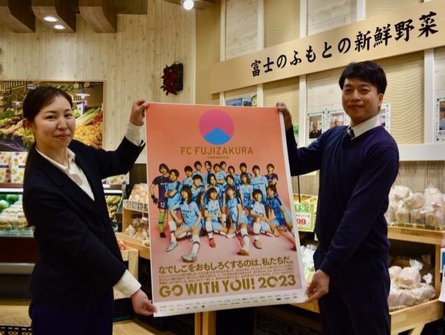 富士吉田市で創業した株式会社山梨さえきの取締役で商品開発部部長の桑原孝太さんは、和やかな雰囲気で話しはじめました。「美と健康を届けること」を目的に「セルバ」「おかじま」2つのスーパーマーケットチェーンを展開する株式会社山梨さえきはオフィシャルウェアパートナーとして、FCふじざくら山梨をサポートしています。
