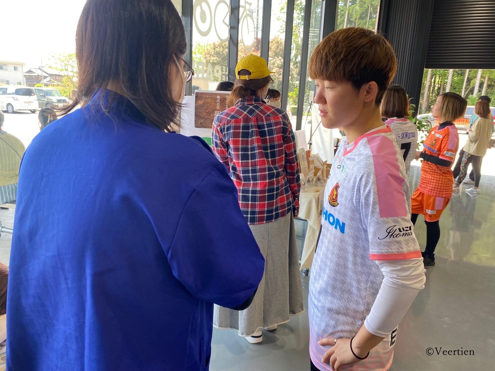 ヴィアティン三重は女子サッカーのみならず、地域の皆さんが各種のスポーツに親しみスポーツの価値に触れてもらうことができる、多種目、多世代、多志向の総合型スポーツクラブです。健康や生きがいを提供し、笑顔があふれ三世代が集う幸せな街を実現出来るようSDGsに賛同し取り組んでいます。クラブ全体では、主に健康づくりやスポーツ教室、教育支援を展開していますが、女子サッカーチームのヴィアティン三重レディースとしては、三重県女性起業家コミュニティ【wiz:】が開催する『wiz: 春のフェスタ』の開催に協力しています。今年の開催日は試合開催日の翌日となりましたが、多くの選手・スタッフが参加しました。これは、ヴィアティン三重レディースにとって大切な活動なのです。