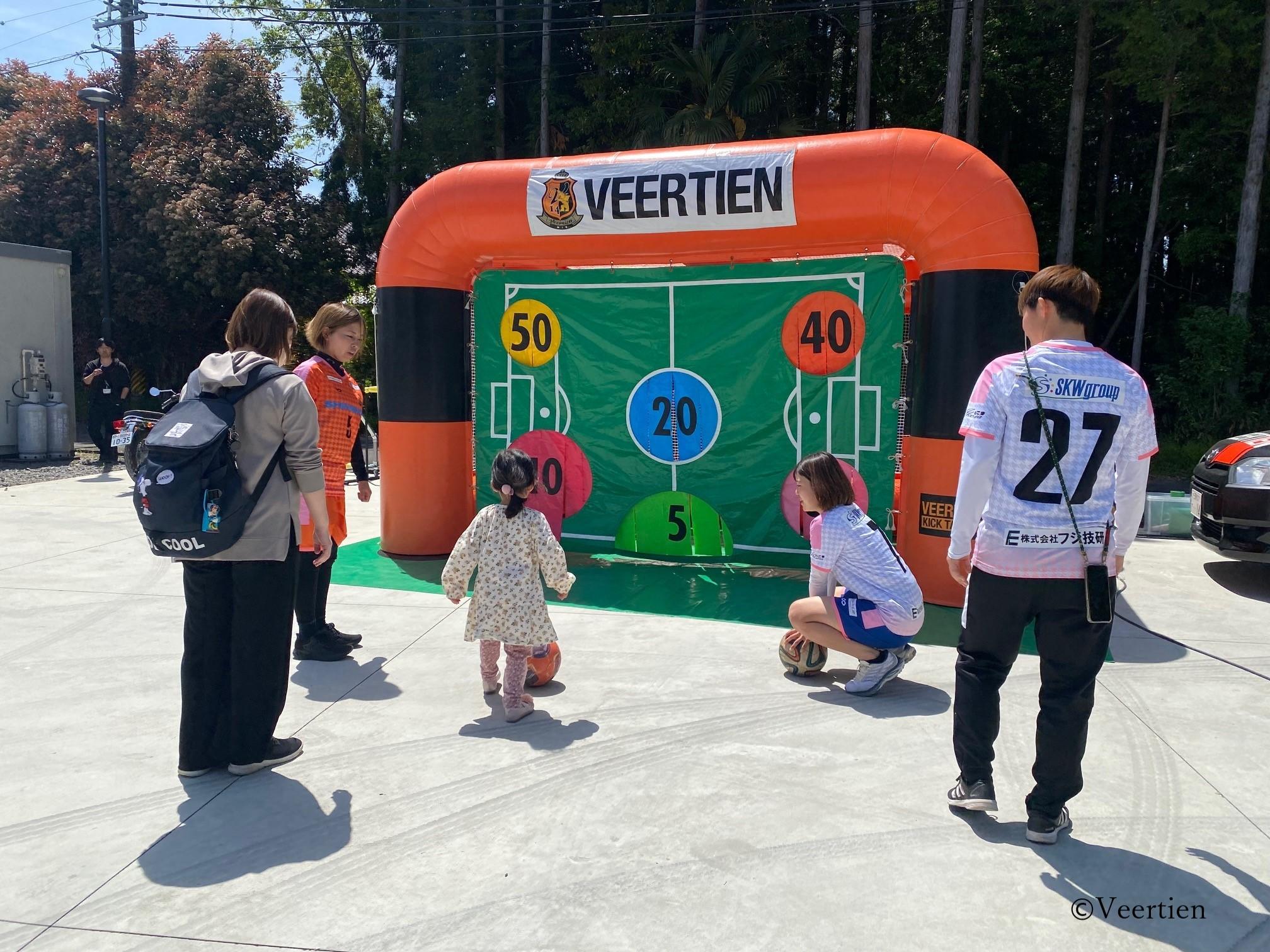 『wiz: 春のフェスタ』は、この地域で起業した皆さんが、主にテストマーケティングをするためのイベントです。女性起業家がブースを出展し来場者に試作品を販売したり、アンケート調査を行ったりして、起業したビジネスの改善に活かしています。ヴィアティン三重レディースは、このコミュニティと協力して開催の事前告知活動を展開。また、開催日当日は会場内でキックターゲットのアトラクションを行いました。