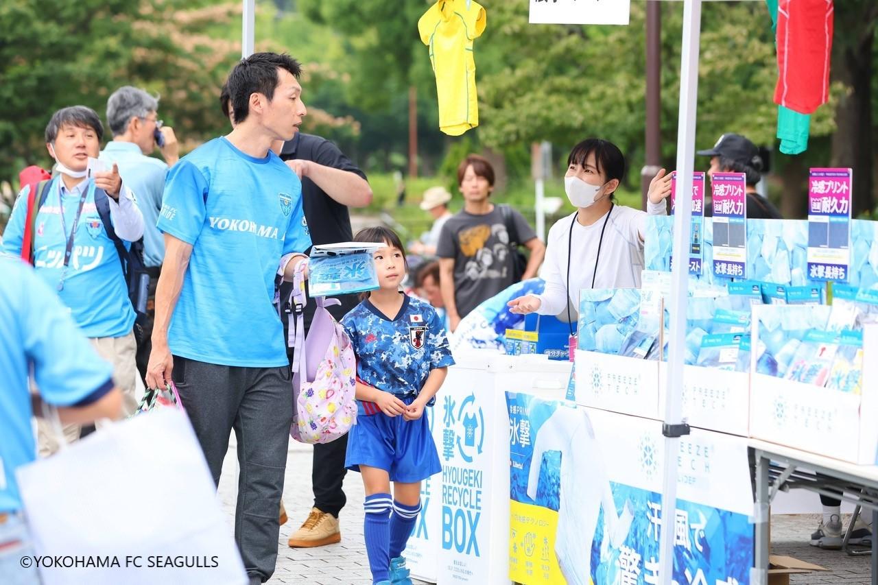 ニッパツ横浜FCシーガルズはオフィシャルクラブパートナーである株式会社リベルタが展開するクーリングウェア「氷撃・フリーズテック」の『ヒートレスキュー プロジェクト』に参加しています。プロジェクトの一環として、2023年6月24日のホームゲーム開催後に、子どもたちの暑さ対策を応援する横浜FC『氷撃SOCCER SCHOOL』を開催しました。会場では、子どもたちが持参した不要なTシャツと「フリーズテック」のシャツを交換。子どもたちは「フリーズテック」のシャツに着替えてピッチに飛び出し元気にボールを蹴りました。熱中症をテーマにしたクイズ形式のゲームも行いました。資源を再利用することの大切さを伝えると共に、頭と身体で地球温暖化や暑さ対策を学べる一石二鳥の仕掛けです。