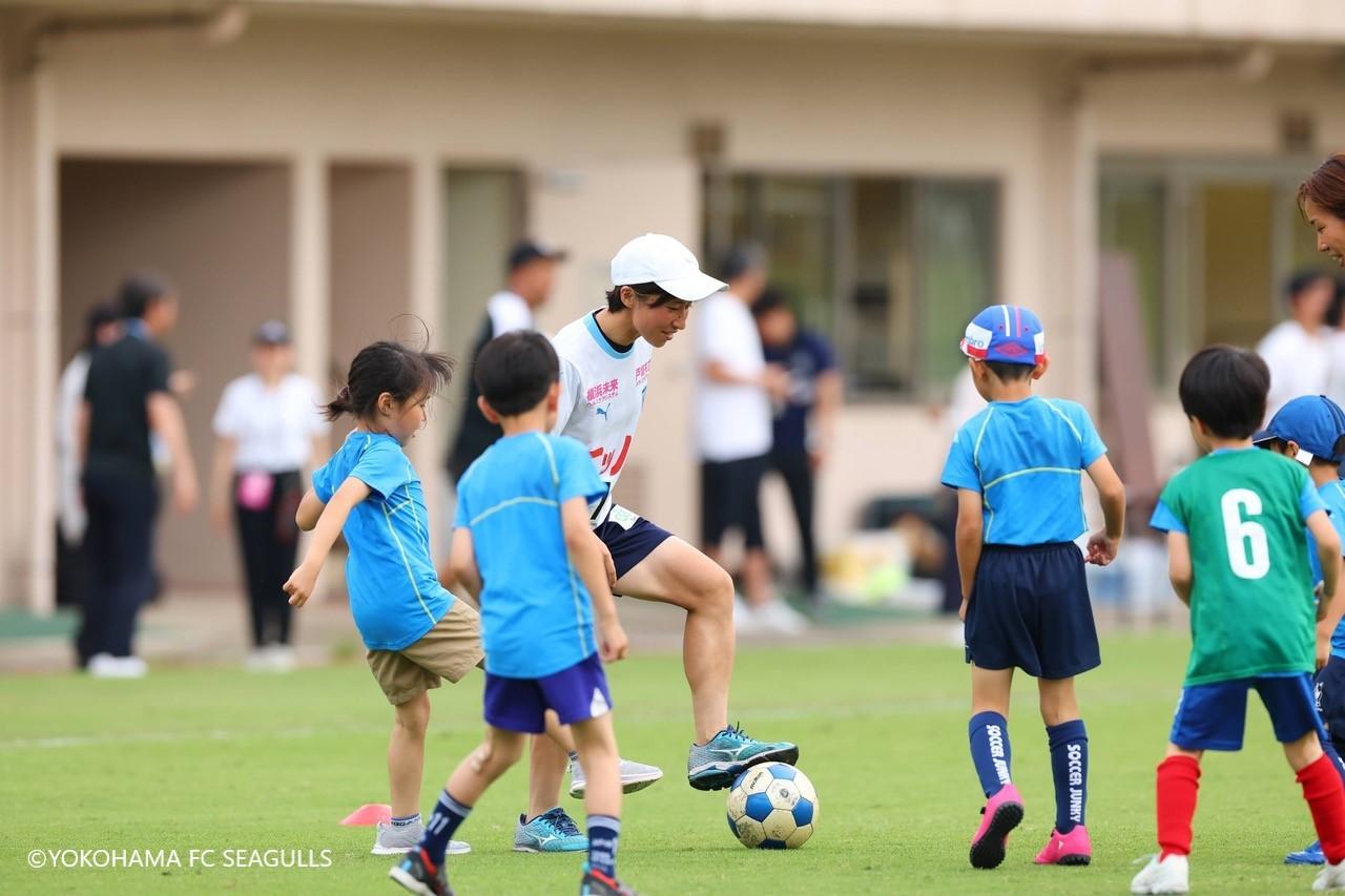 「親御さんにアンケートをとると、暑さ対策として、水を飲む、帽子を被せる、こまめに休憩することは浸透しているとわかりますが、実は、着るウェアを変更することで、さらに対策できることもあるので、それを伝えたいのが弊社の想いでした。選手の皆さんは子どもたちの憧れの的です。一緒にサッカーをできることが、このイベントに来てくださるきっかけになりました。ニッパツ横浜FCシーガルズとのつながりから、このプロジェクトを子どもたちに大きく広げていければと思っています」