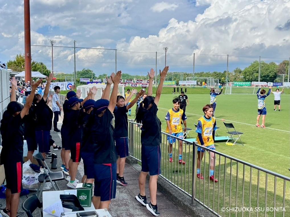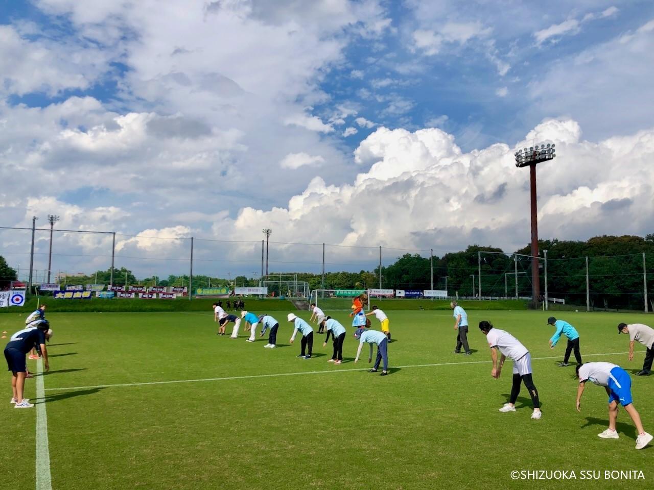 「いつもの『みんなでラジオ体操』の後に誘ったら、すぐに手を挙げた人がたくさんいました。あまり静岡SSUボニータの試合を見に行かない人も手を挙げていたので、皆で一緒に試合を見ることも併せて楽しそうに感じてもらえたのだと思います。ピッチ上に立つと、はじめは照れ臭かったです。でも、観客席の皆さんも一緒にラジオ体操をやってくれたので気持ち良く、すぐに照れ臭さはなくなりました」