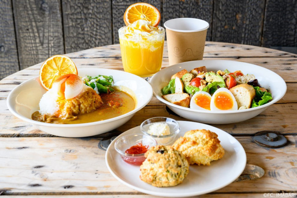 「アシックス里山スタジアム」に併設されたカフェ「里山サロン」は、身体、心、そして環境に優しいメニューを提供する特別な空間です。地元愛媛県産の食材を多く使用し、環境に配慮した包装を採用。訪れるだけで地域や環境への優しさを実感できる、心温まる場所を目指しています。
