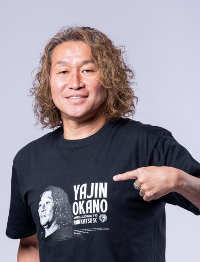 日本をW杯初出場に導いた元日本代表野人の愛称でお馴染みの岡野雅行(南葛SC事業本部長)がスタジアムに登場。