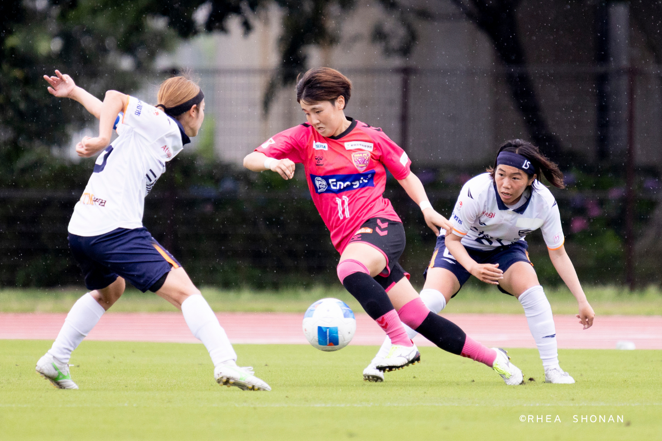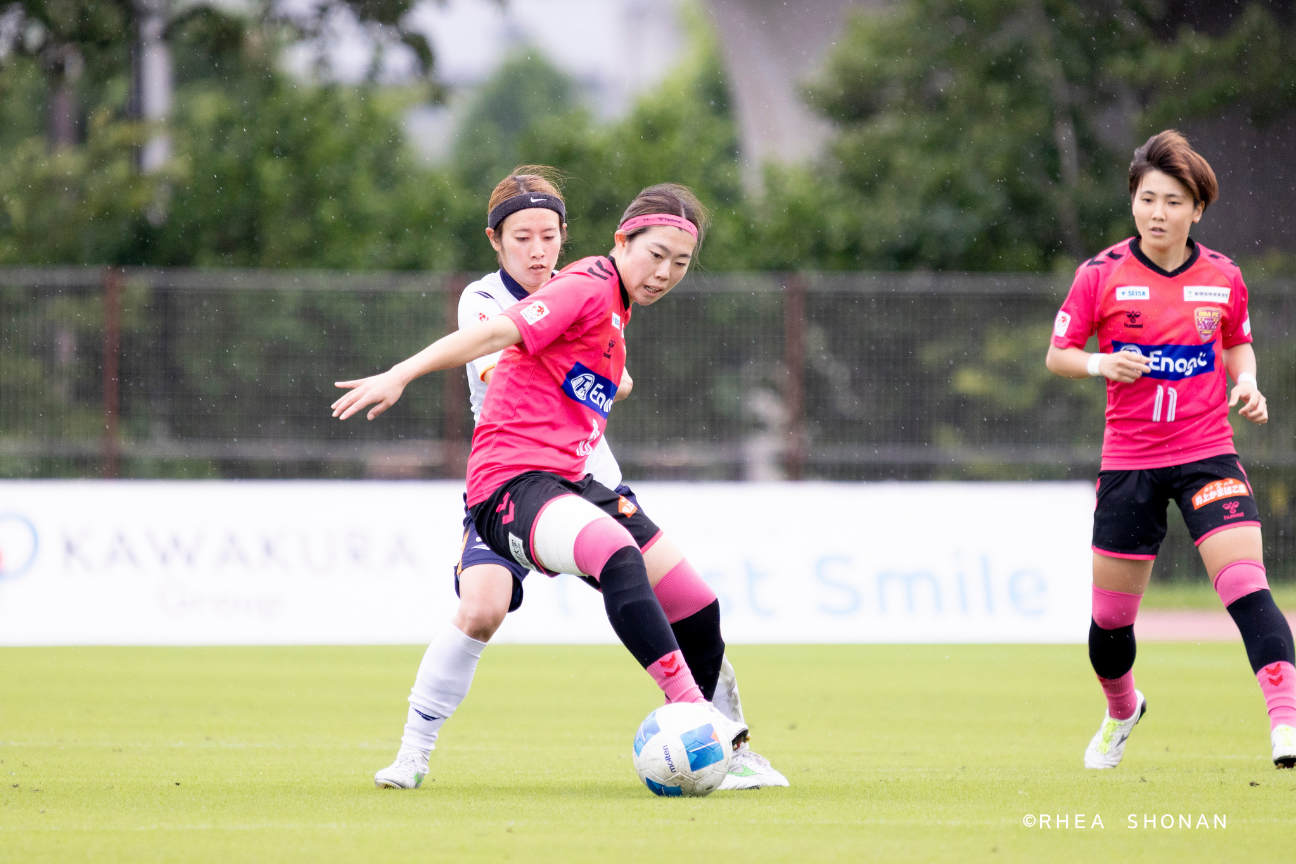 試合は前半から一進一退の攻防が続く。両チームともに決定機を作るものの、守備陣が粘りを見せ、なかなかスコアが動かない展開に。しかし前半アディショナルタイム、R湘南の加藤ももが先制ゴールをあげる。