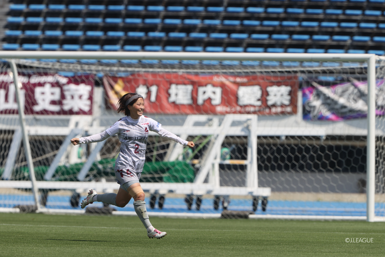 先制点は前半41分。名古屋の平尾愛穂が今季初ゴールをマーク。名古屋がリードを奪い、前半を0-1で折り返す。