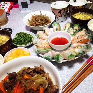 この日は、生春巻、ジンギスカン、春雨スープetc...