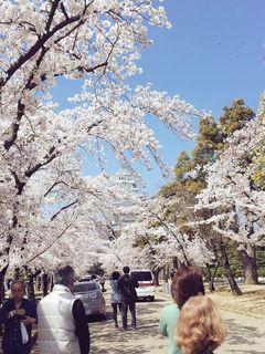 改修工事も終わり、真っ白に輝くお城と桜は絶景でした。