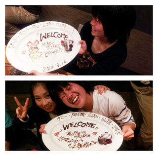 お店の計らいで皆で歌って踊ったり、サプライズでプレートやケーキを用意して頂いたりと