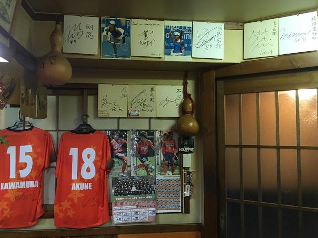 写真は居酒屋の一画にある愛媛FCレディースコーナーです