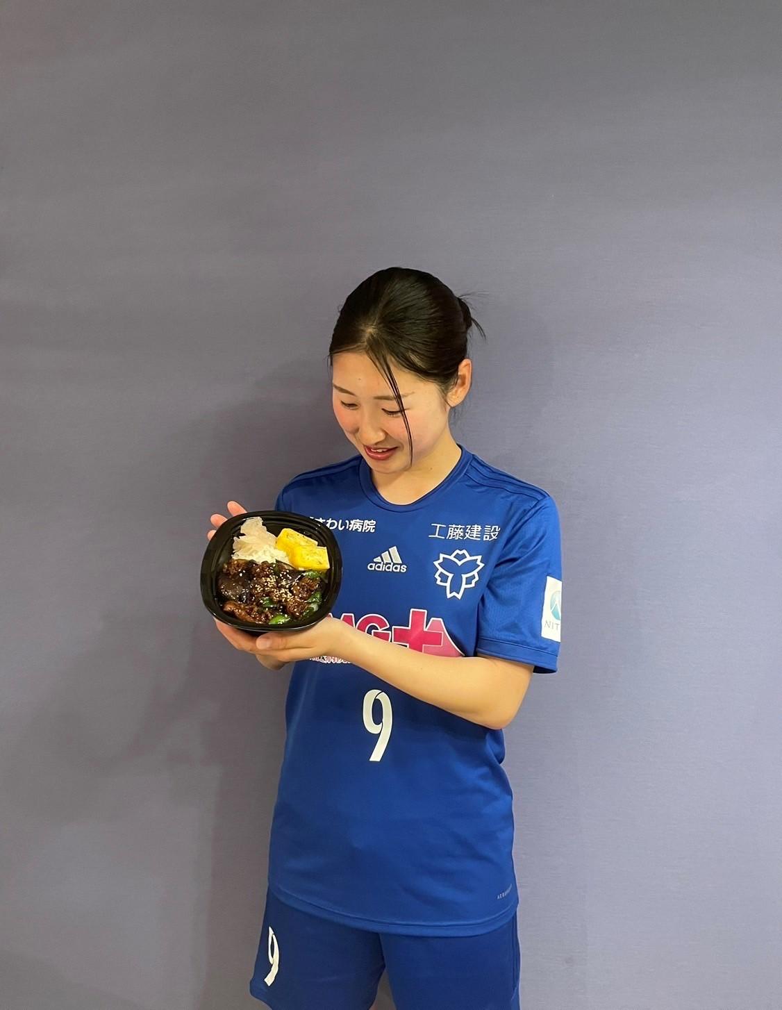 今シーズンのホーム開幕戦から、私のバイト先「鴨志田惣菜店」とコラボした『大西若菜プロデュース•茄子味噌スタミナ弁当』販売しています。このような機会は学生のうちに経験できたことにとても感謝しています。販売してからとても美味しい!などの声がたくさんあがっていてとても嬉しく光栄です
