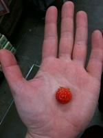 先日、仕事中に"いちご"を加工していたら普通サイズの"いちご"に紛れて、このミニチュアいちごを発見しました。