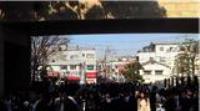 まず電車を降りて改札で並びましたね、、そして大学へ行く道は途切れることなく、人がいっぱいいました。