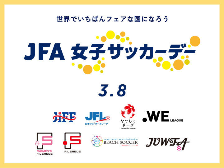 日本女子サッカーリーグ(なでしこリーグ)は、日本サッカー協会(JFA)が取り組んでいる「JFA 女子サッカーデー」の取り組みに賛同し、3月 8 日に SNS 活用による啓蒙活動を実施いたしますこと、お知らせいたします。