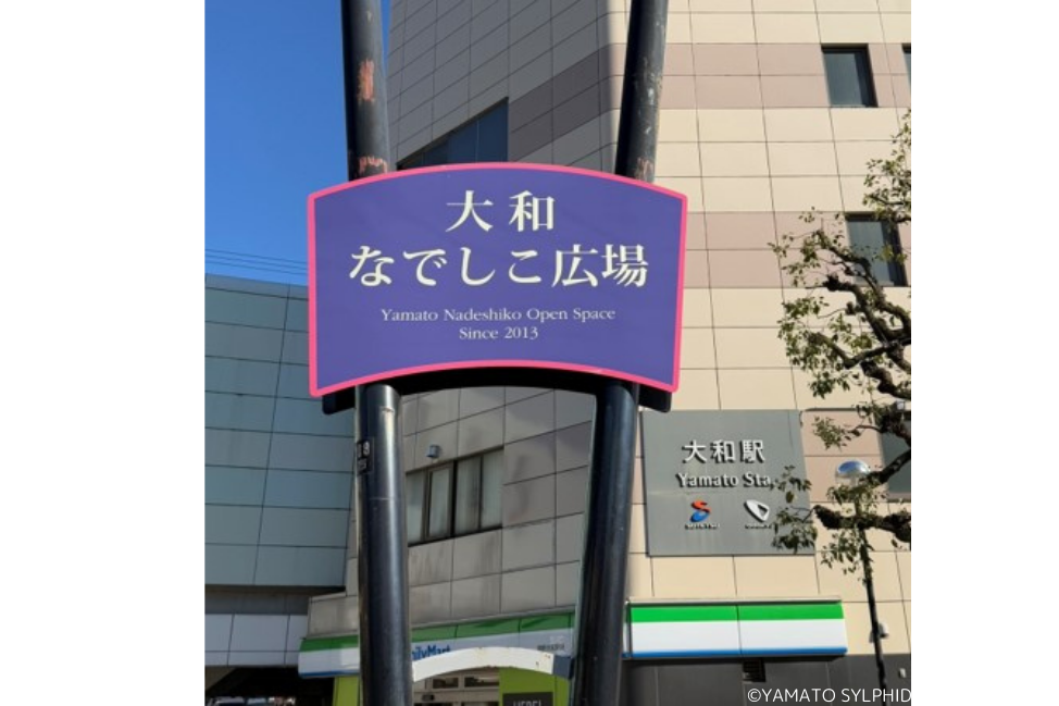大和駅ロータリー広場は2013年に「大和なでしこ広場」と命名されました。広場には大和市にゆかりのある大野忍さん、川澄奈穂美選手、上尾野辺めぐみ選手、小野寺志保さんの手形モニュメントも設置されています。