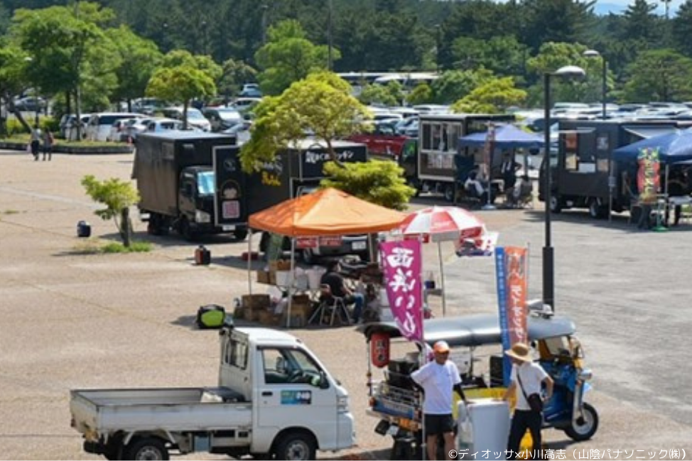 出雲名産、ディオッサ出雲FC選手が栽培している、ブランド芋「西浜いも」を使った、焼き芋、アイスをはじめ、島根県で稼働していらっしゃる移動販売のみなさんの協力で、ホーム戦時には、東西に長細い県の各所のおいしいものを食べていただけます。