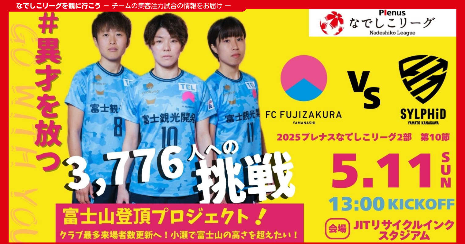 是非スタジアムで観戦いただき、一緒になでしこリーグを盛り上げましょう!
