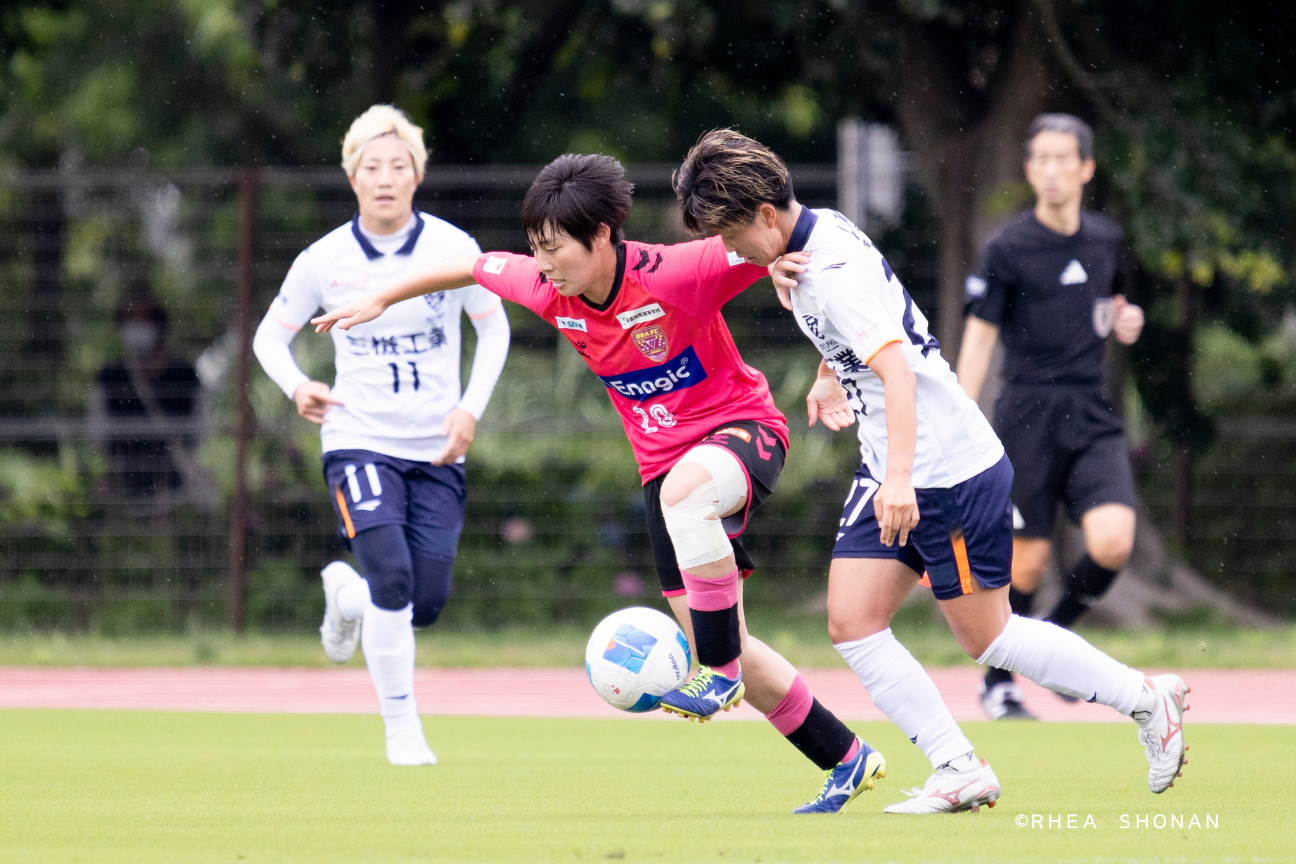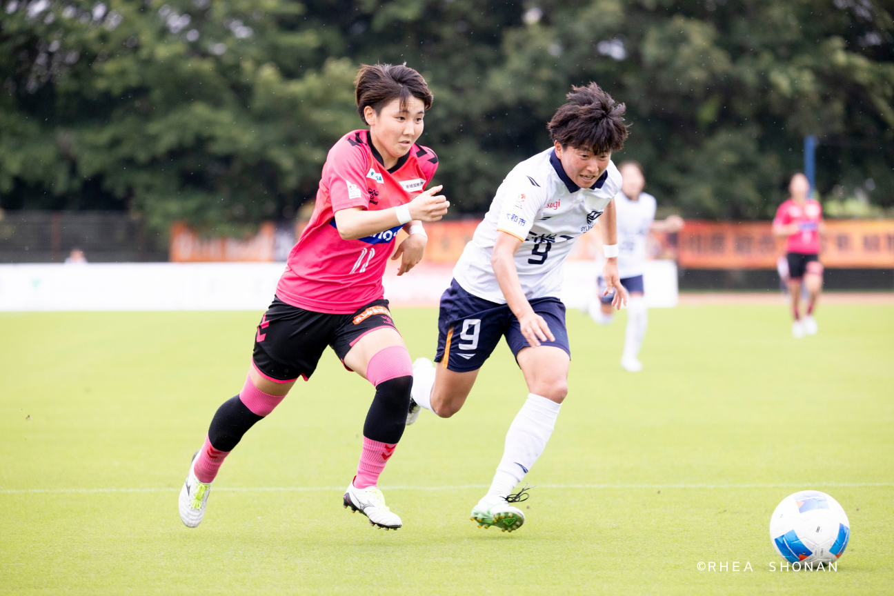試合は前半から一進一退の攻防が続く。両チームともに決定機を作るものの、守備陣が粘りを見せ、なかなかスコアが動かない展開に。しかし前半アディショナルタイム、R湘南の加藤ももが先制ゴールをあげる。